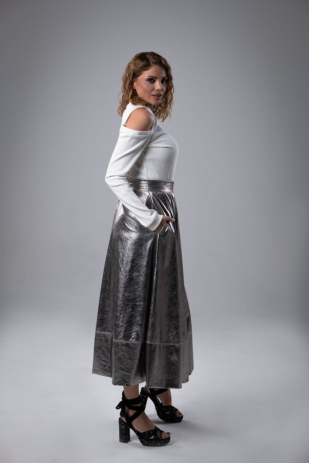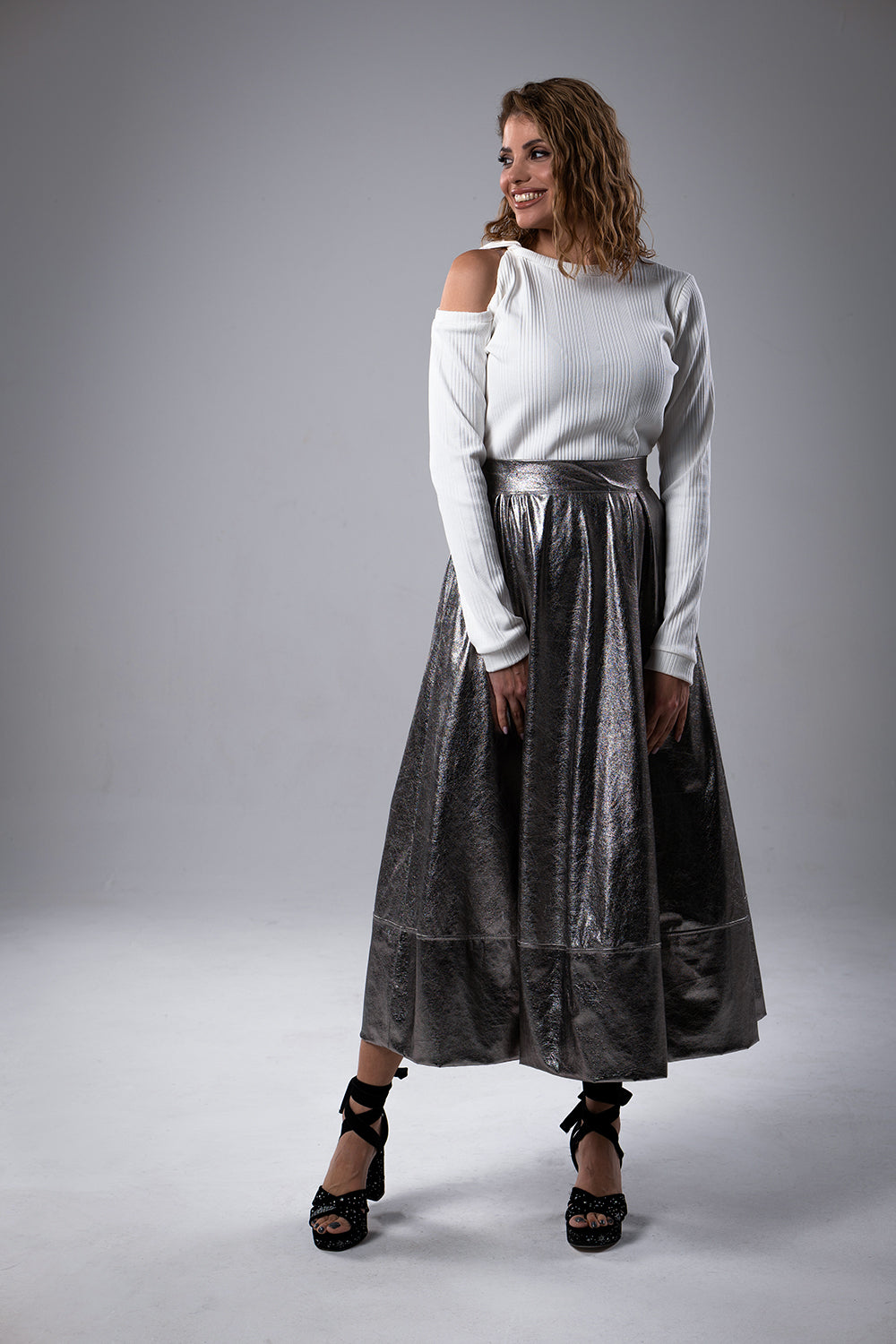 This is our new shirt, with knot on shoulder, super comfy fabric, shirt for a statement look.
