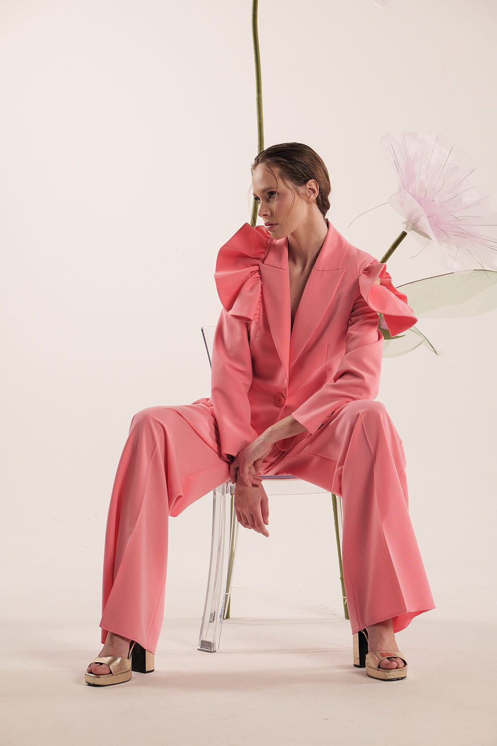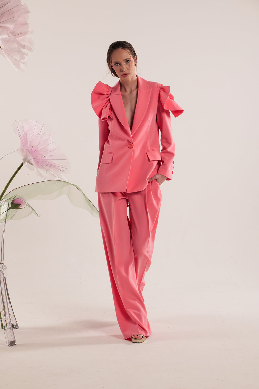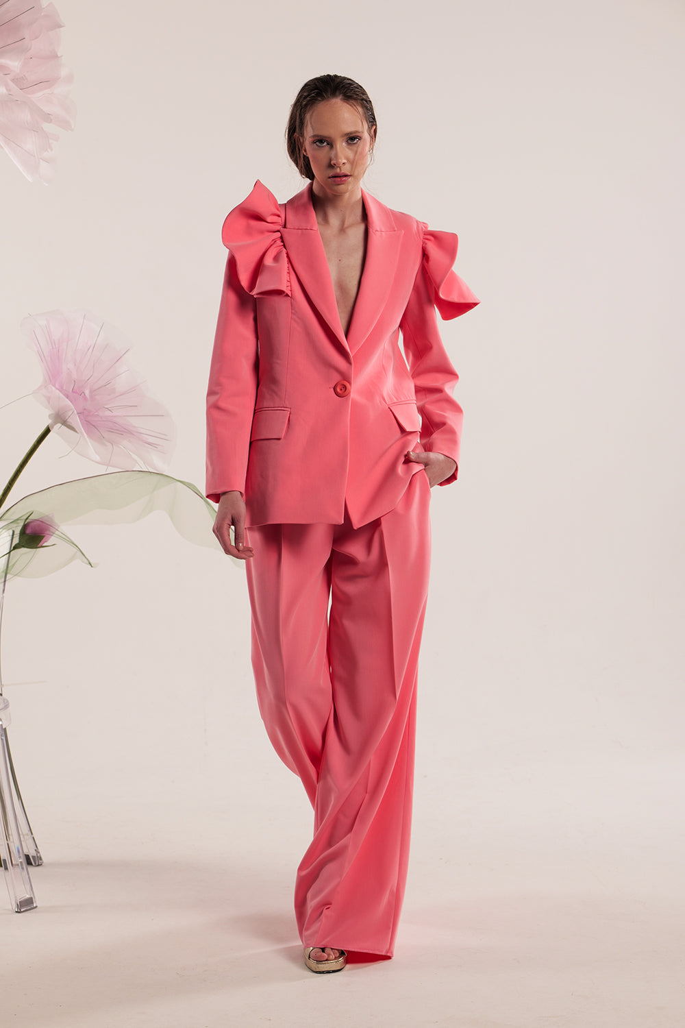 HANA pink ruffle blazer