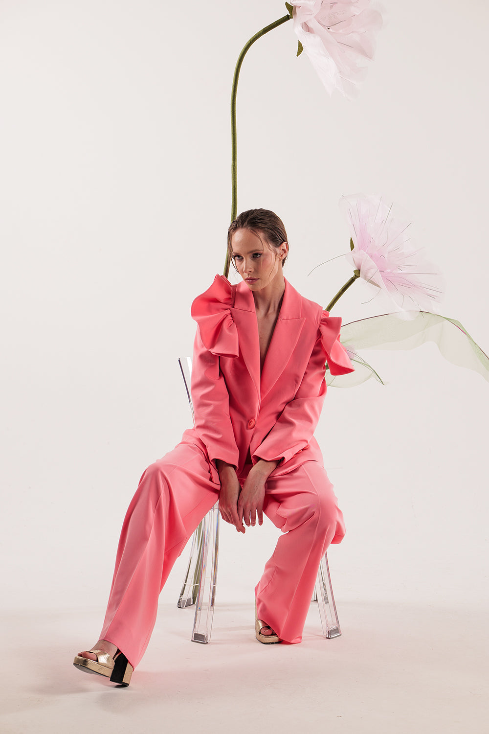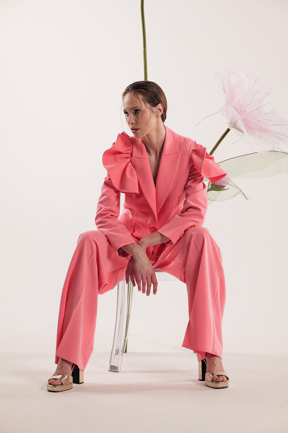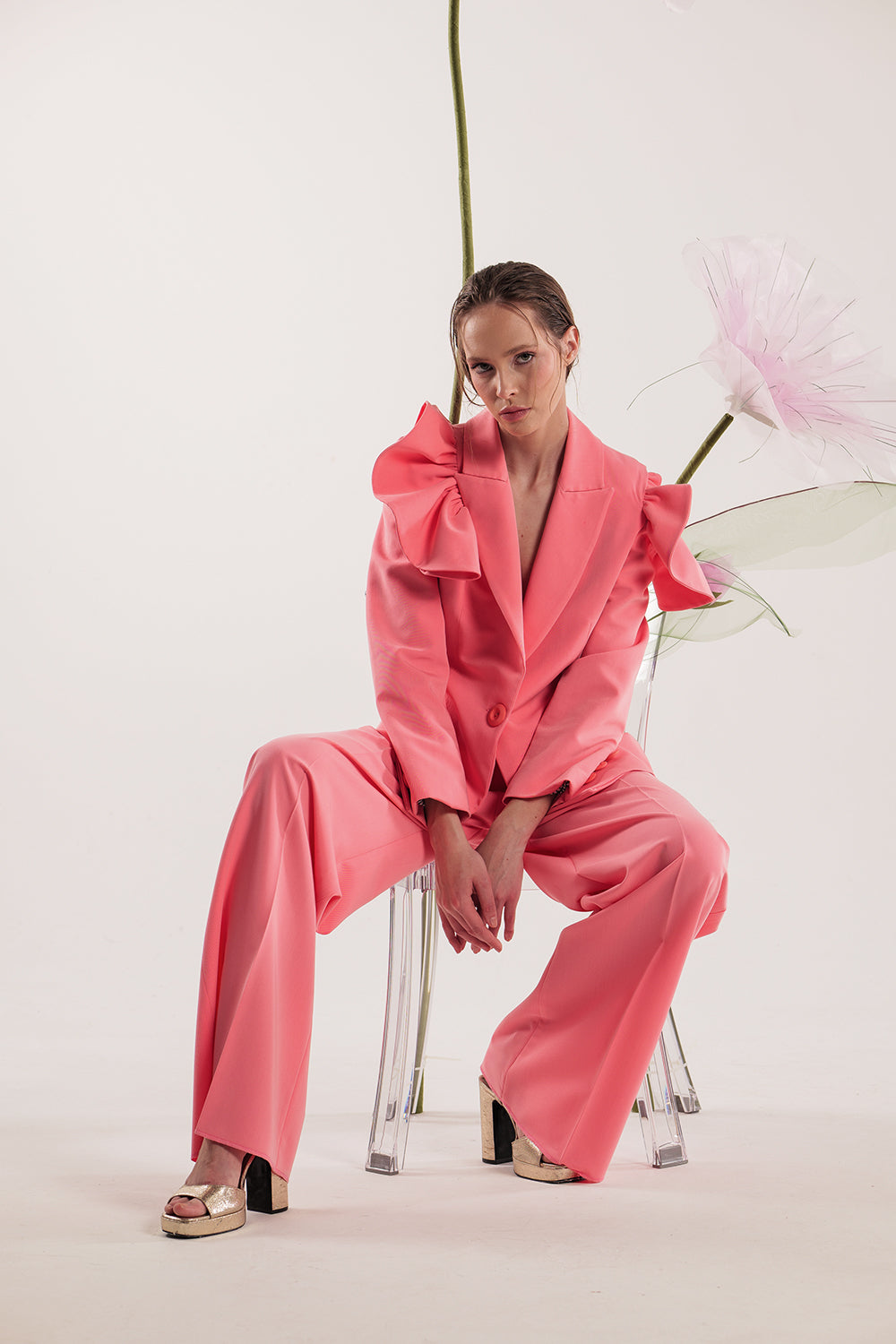 HANA pink ruffle blazer